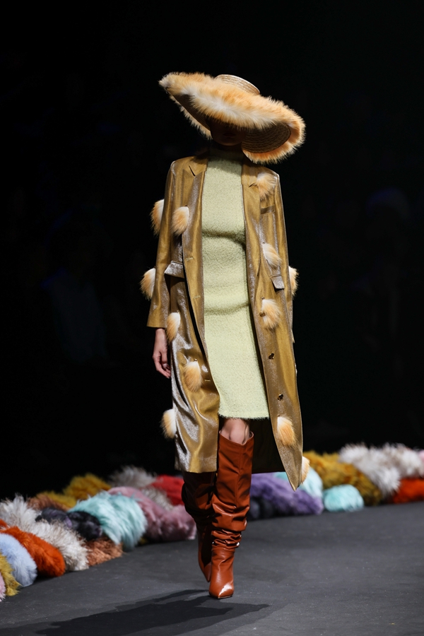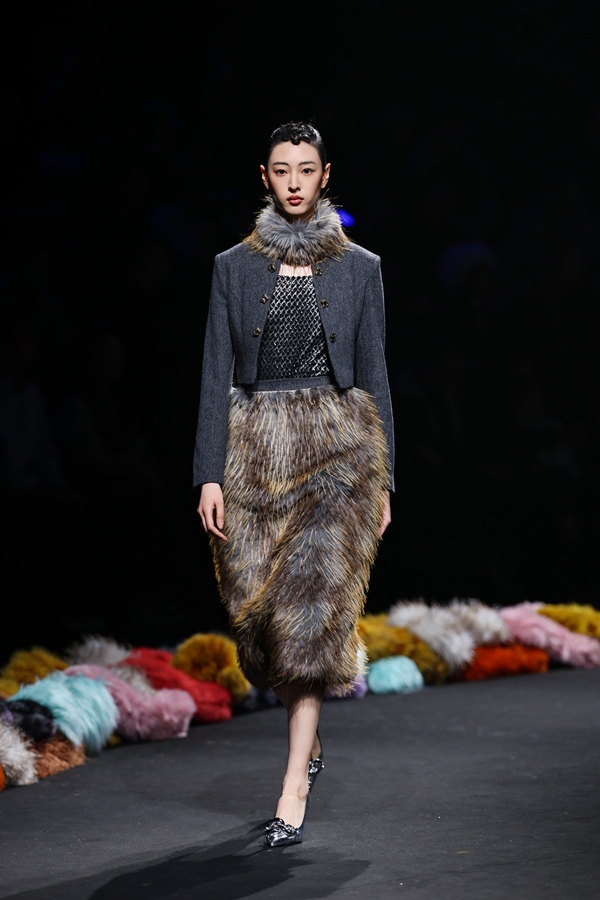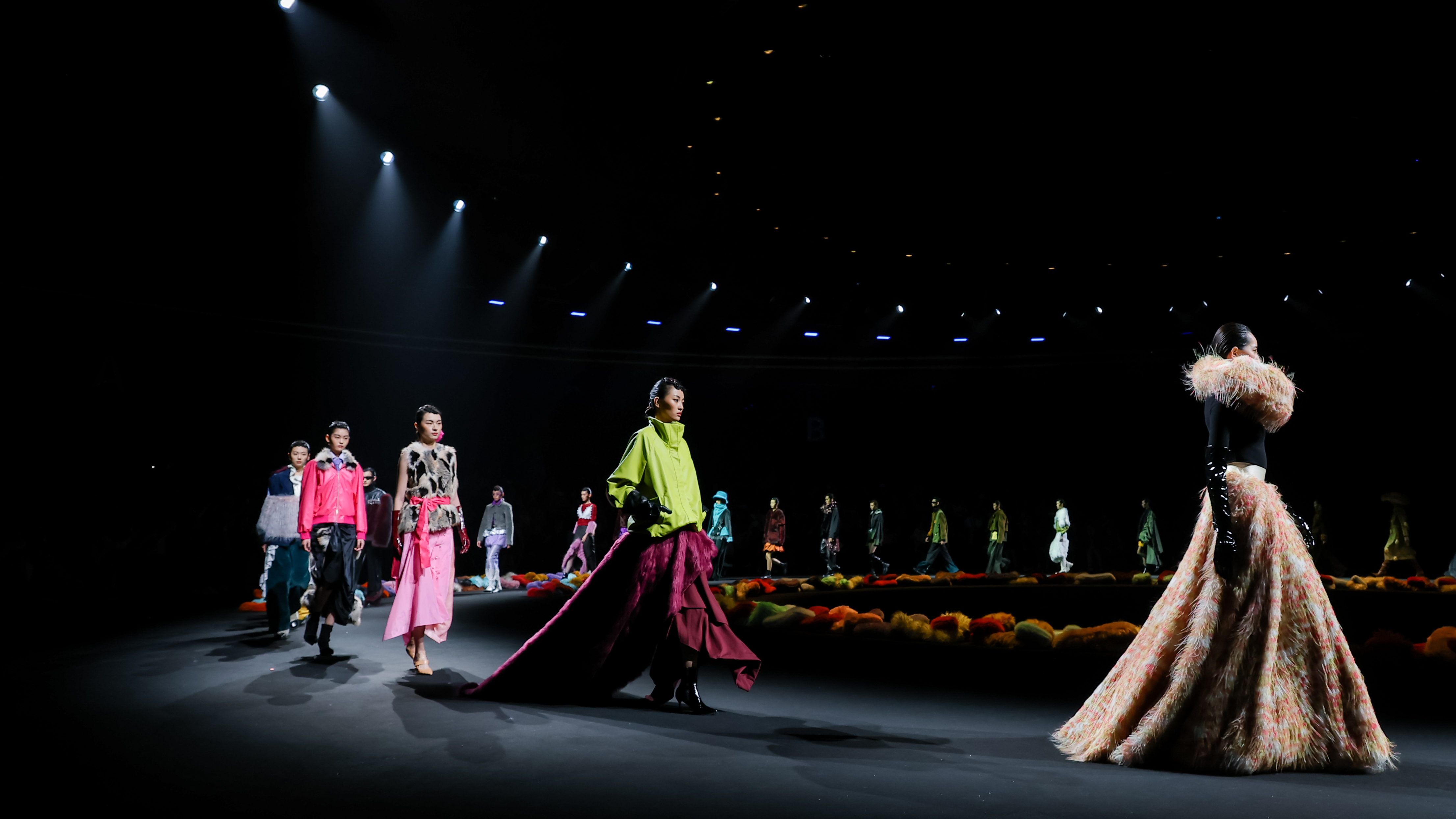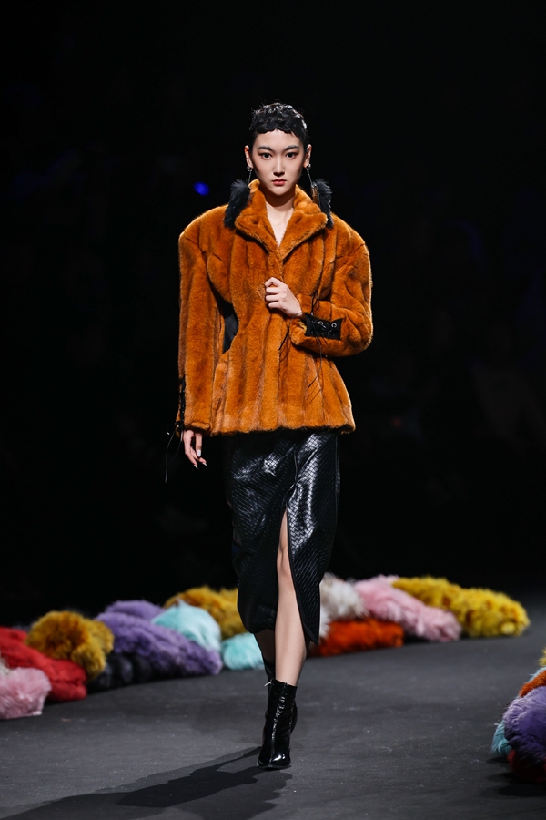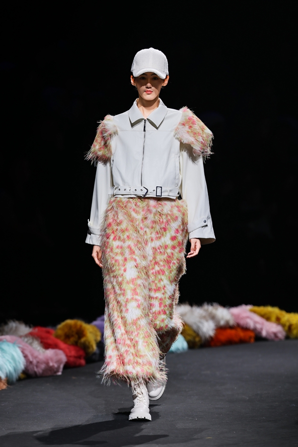 作为“AW26流行趋势发布秀”的华彩章节——本场发布秀由纬一多次合作的新锐设计精英张玮倾力打造。秀演以本季流行趋势的核心概念“聚势”为主旨灵感,将前沿趋势与设计巧思同纬一仿水貂、提花等优质面料深度碰撞,借由“雕琢、流淌、藏蕴、光影”四大主题篇章展开设计叙事。秀演在面料触感、光泽、质感的相融相生间,回归产品本质,于优雅、松弛的氛围中,探索可持续人造皮草流行趋势的发展趋向,让科技赋能的环保面料绽放别样时尚魅力。