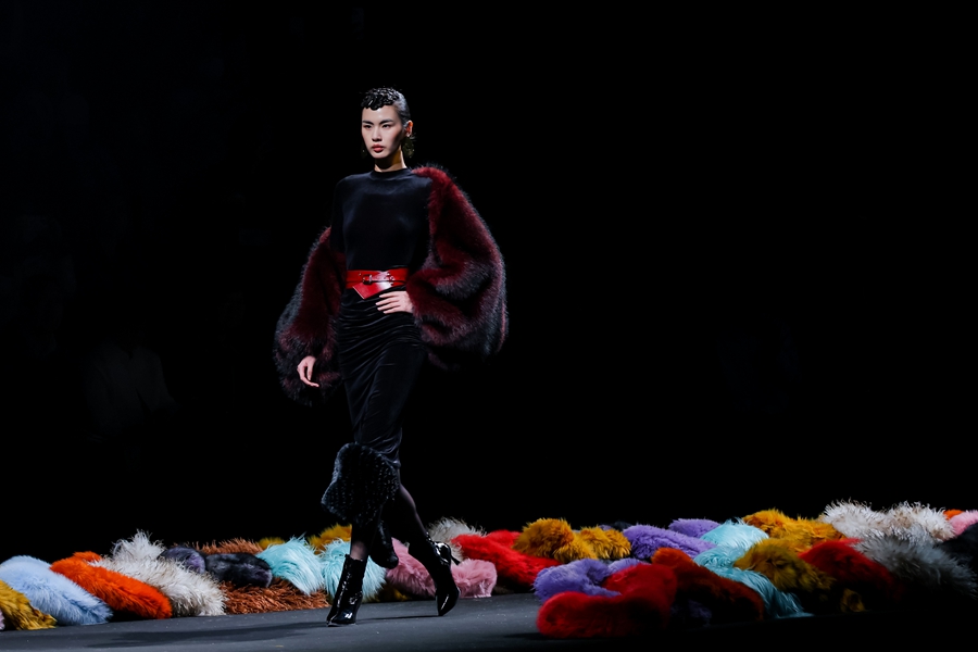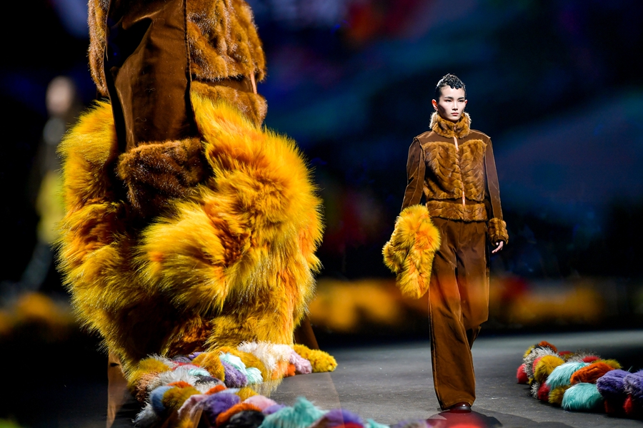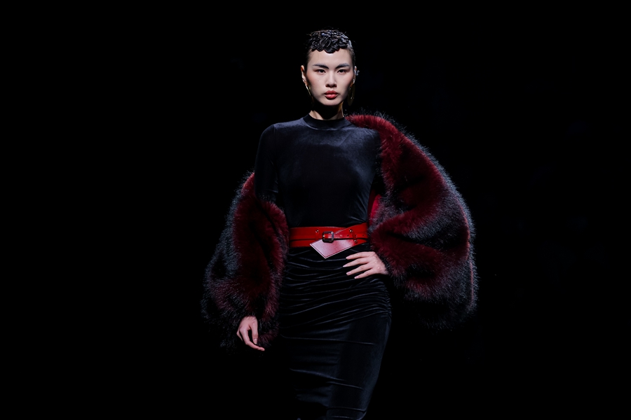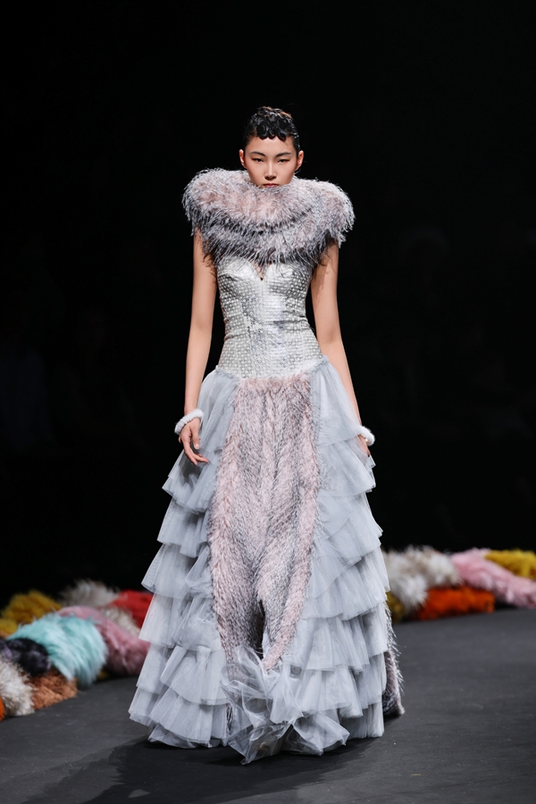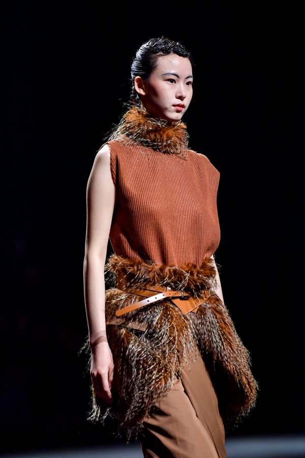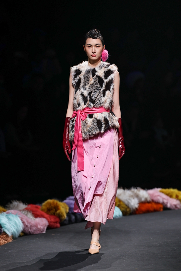 作为“AW26流行趋势发布秀”的华彩章节——本场发布秀由纬一多次合作的新锐设计精英张玮倾力打造。秀演以本季流行趋势的核心概念“聚势”为主旨灵感,将前沿趋势与设计巧思同纬一仿水貂、提花等优质面料深度碰撞,借由“雕琢、流淌、藏蕴、光影”四大主题篇章展开设计叙事。秀演在面料触感、光泽、质感的相融相生间,回归产品本质,于优雅、松弛的氛围中,探索可持续人造皮草流行趋势的发展趋向,让科技赋能的环保面料绽放别样时尚魅力。