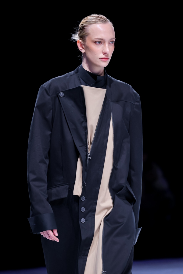 都市与自然、工作与生活,边界正在消融。在“共生”系列中,杉杉以建筑感的结构美学与隐含户外基因的面料,构建出兼具都市质感与功能属性的日常着装。一件外套,既得体于商务场合,亦从容于山野之间。这是对“流动生活者”的回应——服装不再为单一场景设限,而是成为穿行者多元身份的延伸。