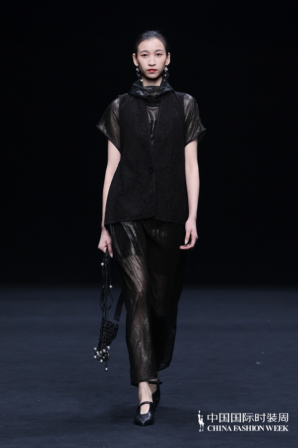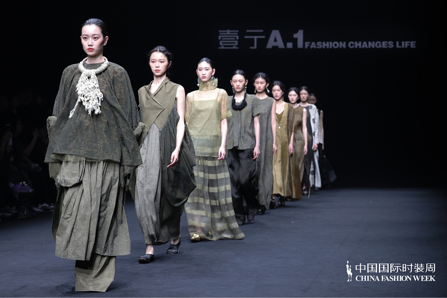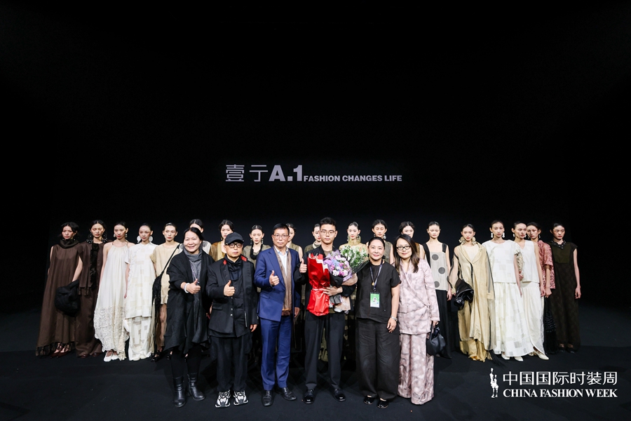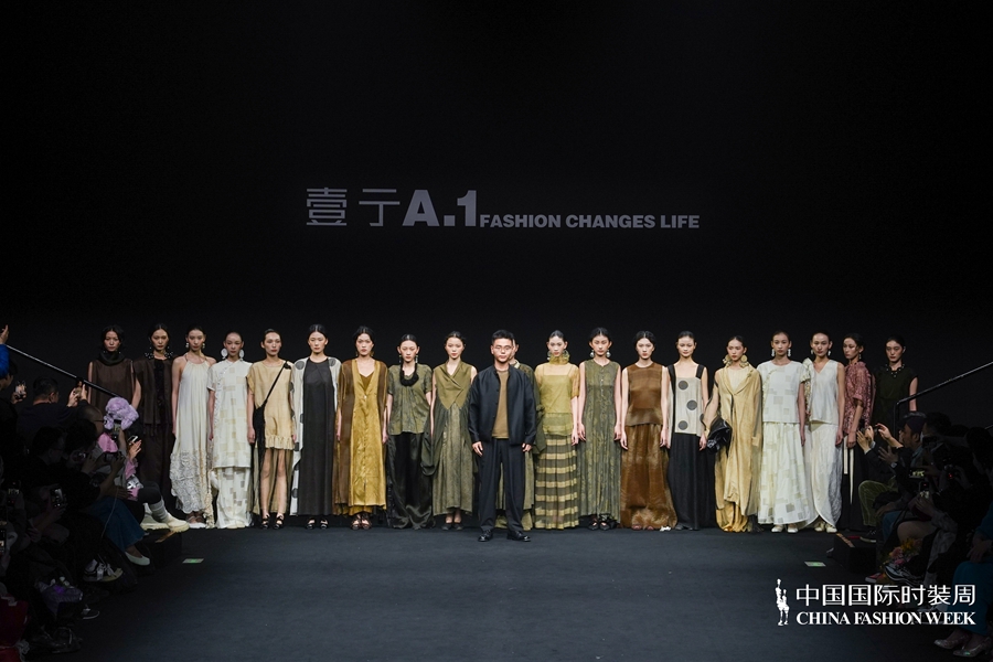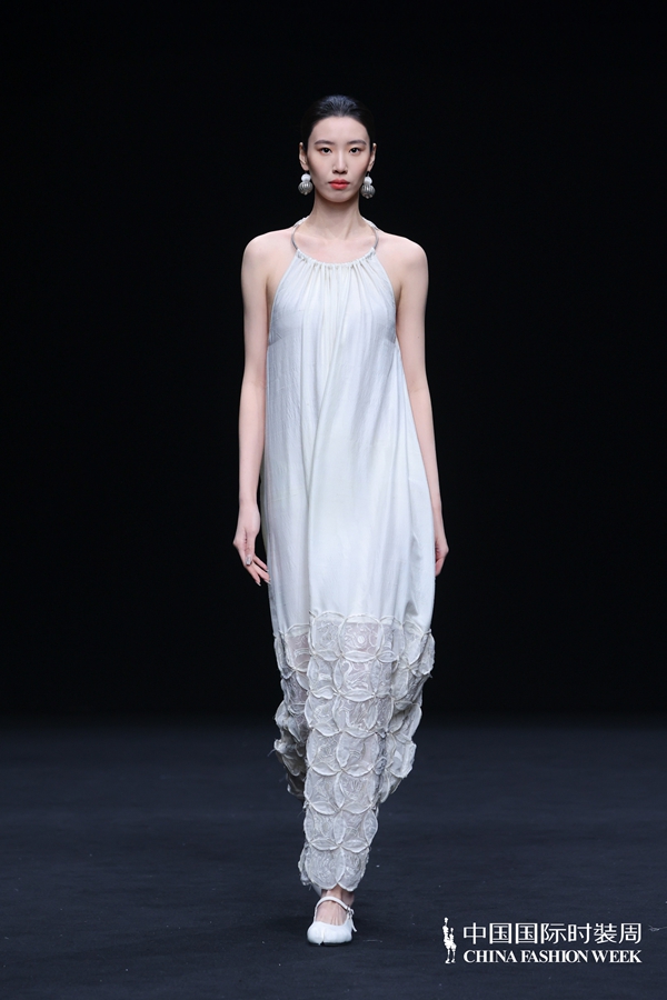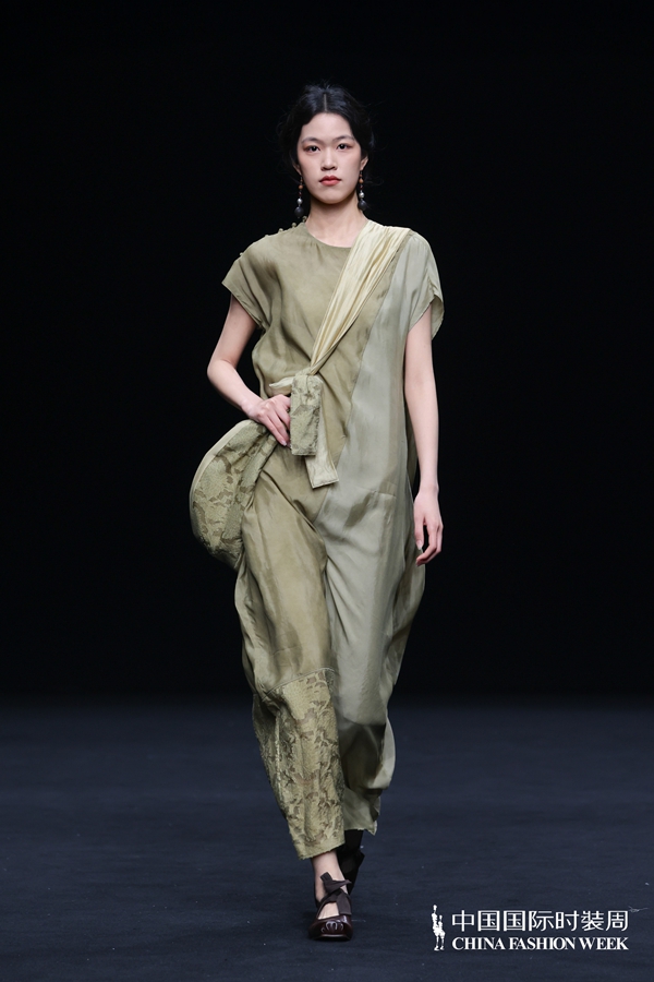 在设计呈现上,壹亍A.1以流动剪裁与松弛廓形为核心设计手法,摒弃过度修饰,消解穿着的束缚感,让服装线条随身体自然舒展。细节之处尽显匠心,手工缝制、植物染色等精工技艺的运用,进一步提升服装的质感与穿着体验,于简约中彰显高级格调。在面料选择方面,品牌秉持天然、透气、亲肤的原则,精选真丝、棉麻等天然材质,兼顾触感与体感的双重舒适,构建可持续的本真美学。秀场之上,模特以从容步态演绎系列造型,轻盈流动的衣影与现场空间氛围相得益彰,收获了现场观众的高度认可。