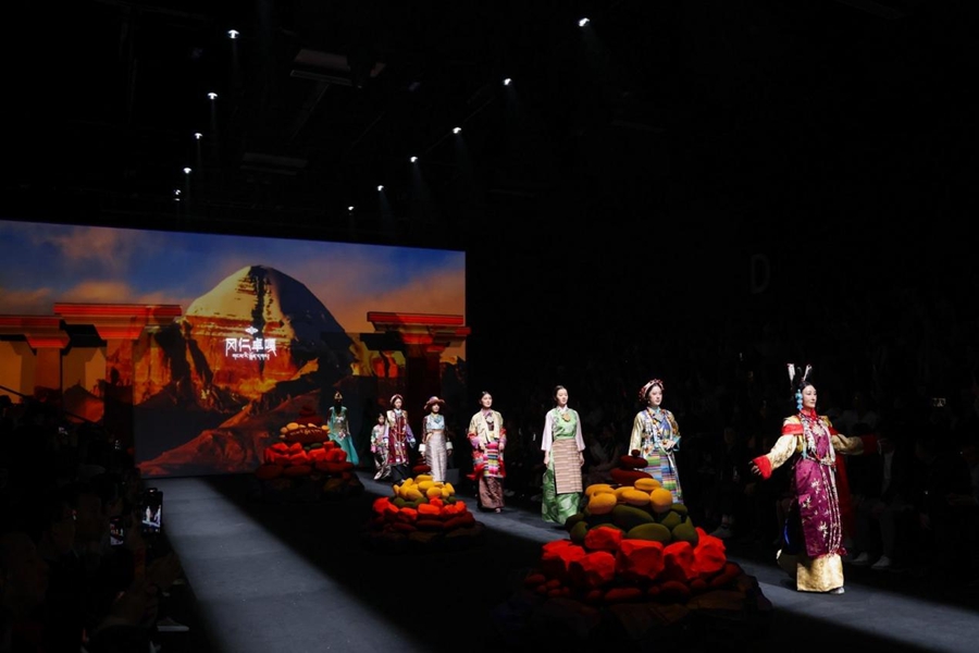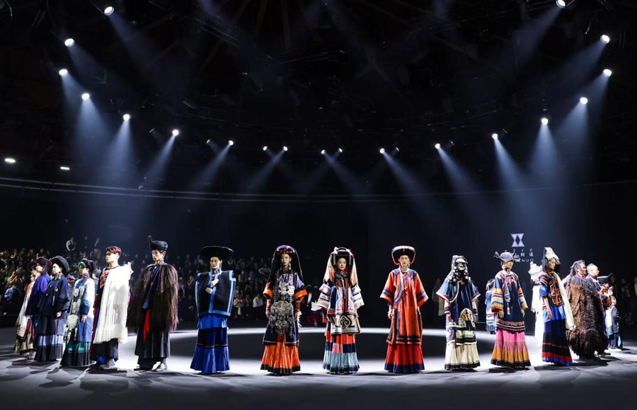 更可贵的是一批扎根大地的设计力量持续生长:设计师林栖将水田衣、马面裙、蓝染、植物染等非遗元素与家乡记忆结合;设计师梁燕深耕大凉山,活化彝绣与银饰;古阿新携手贵州村T,呈现56个民族新娘服饰与国潮男装的碰撞;陶萨、LockFlyDuck、冈仁卓嘎等品牌从草原、新疆、雪域非遗中汲取灵感,打破刻板印象,让传统技艺在当代设计中活态传承。
